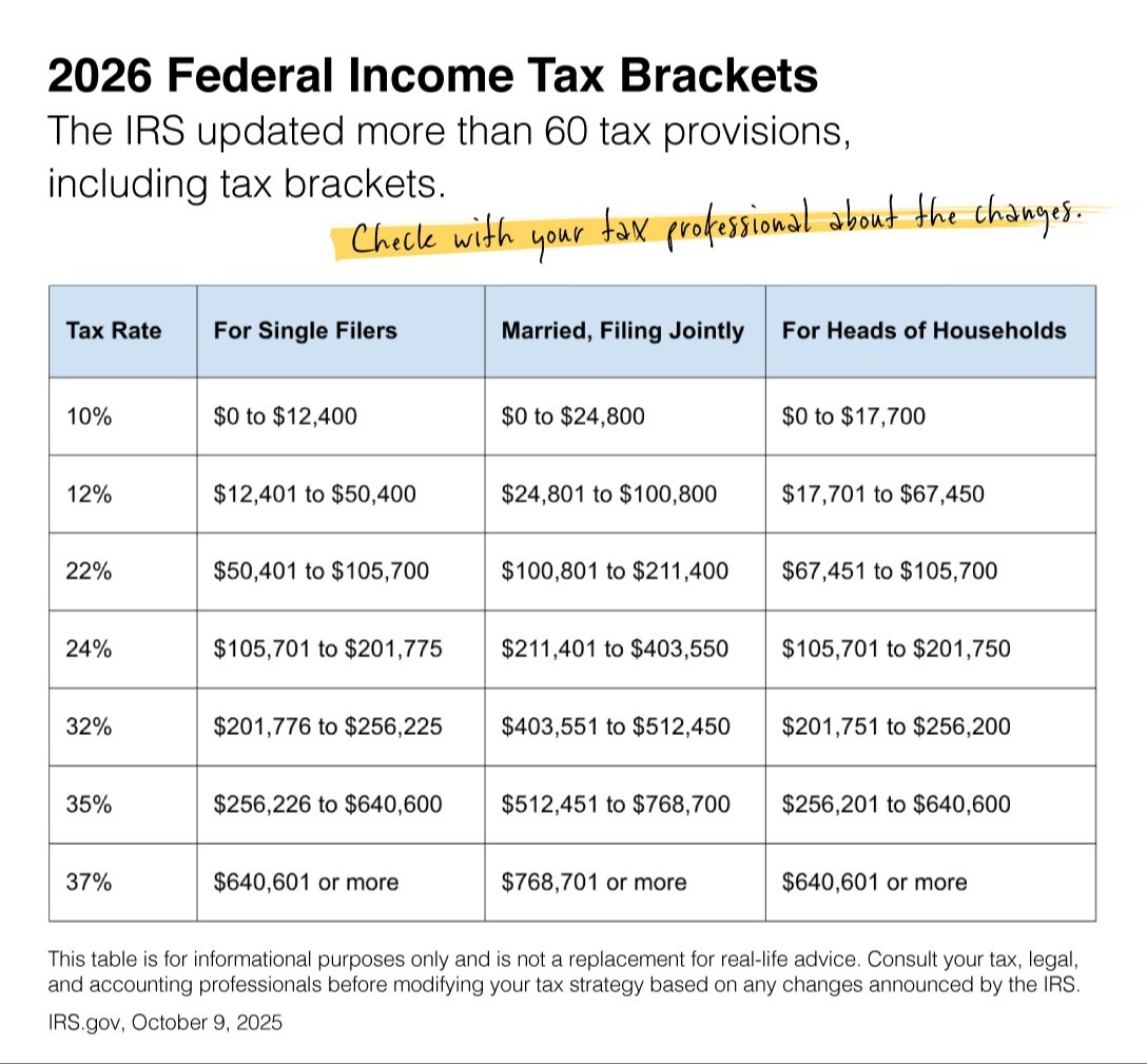 It is important to remember that this information is for educational purposes only. You should always consult with a qualified tax professional before making any financial decisions or changes to your strategy based on these new figures. If you have general questions about how these adjustments might factor into your long-term planning, please feel free to contact our office.